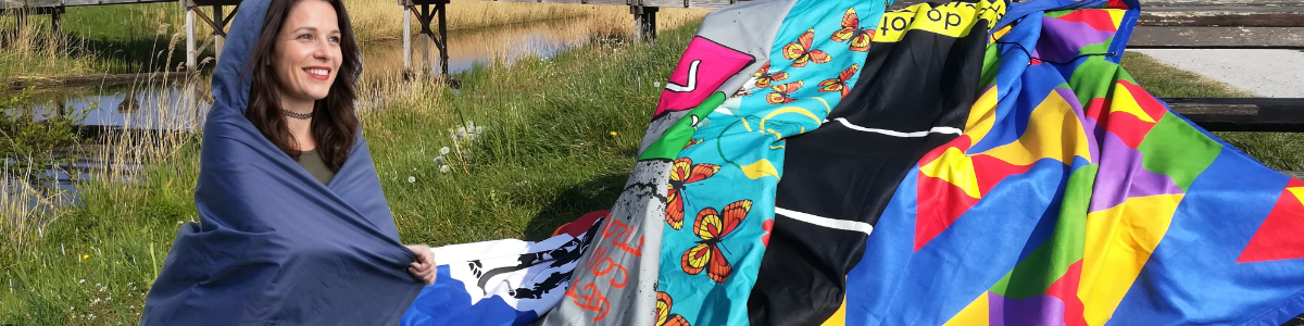 Het festivalkleed is een multifunctioneel picknickkleed mét capuchon. Het heeft een waterafstotende onderkant en een zachte fleece bovenzijde. Het is verkrijgbaar met diverse leuke, opvallende prints.